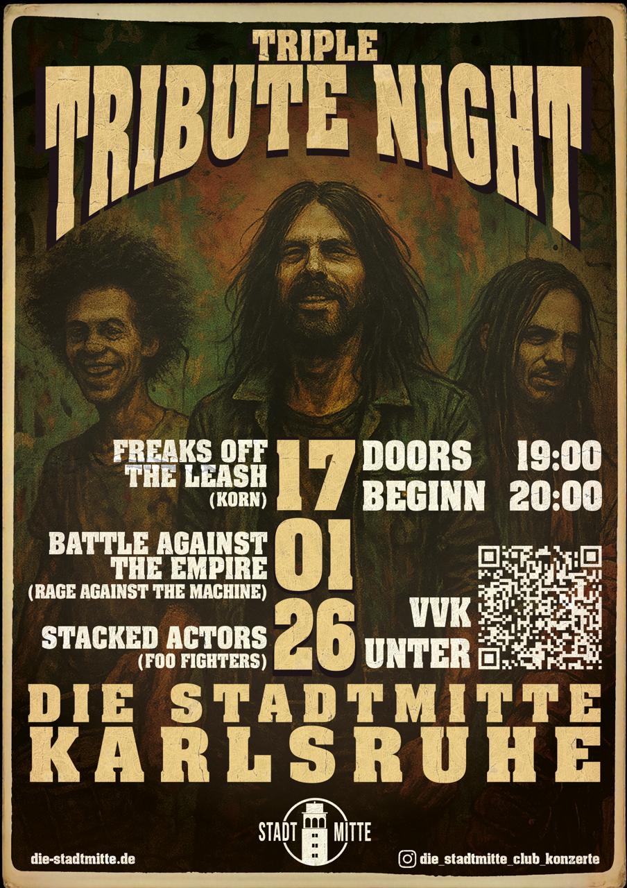 Mit den Stacked Actors rollt seid ihrer Gründung 2013 eine Welle amerikanischer Rockmusik durch den Süden Deutschlands.Benannt nach dem gleichnamigen Foo Fighters Song aus dem Album „There Is Nothing Left To Lose”, steht die fünfköpfige Band für lauten authentischen Sound. Lukas (Leadsänger und Gitarre), Nico (Gitarre und Gesang), Sebastian (Schlagzeug und Gesang), Julian (Gitarre) und Steffen (Bass) stehen den Originalen in Nichts nach.Die Stacked Actors spielen annähernd in Originalbesetzung, was eine detailgetreue Umsetzung der Songs zufolge hat.Lukas, der Frontmann der Actors verkörpert dabei Dave Grohl und kommt dem Original gesanglich wie auch an der Gitarre ziemlich nahe!
